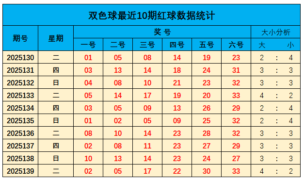 上期回顾:双色球第2025139期开出奖号:红球02、05、17、22、30、33;蓝球06