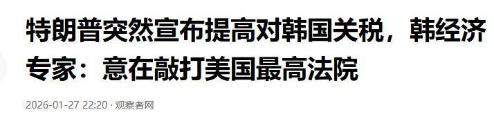韩国某个大学经济学教授许晶就点破了:特朗普突然对韩加税,就是给最高法院递强硬信号。